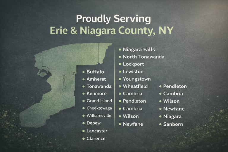 Our team regularly works in communities such as Buffalo, Amherst, Tonawanda, North Tonawanda, Niagara Falls, Lockport, Wheatfield, and surrounding Western New York towns.