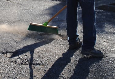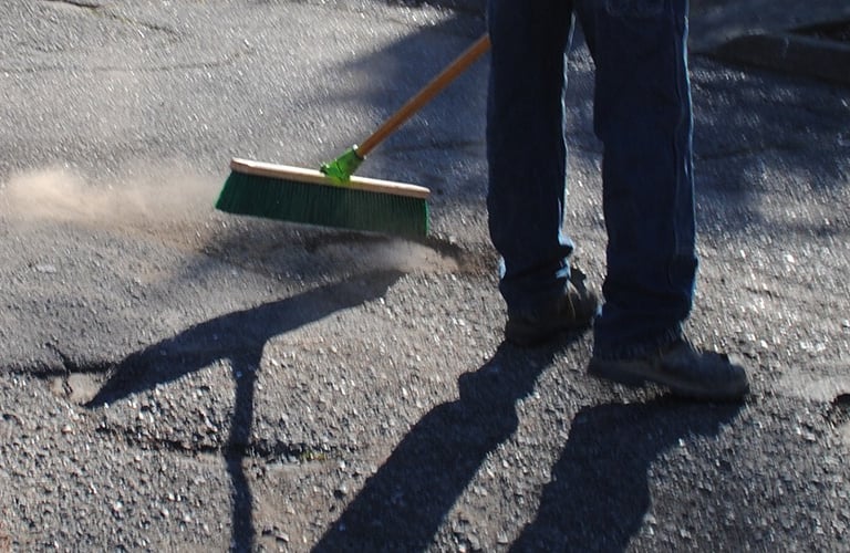 Proper preparation is critical for a long-lasting sealcoat. We clean and prepare the driveway surface before sealing to ensure the sealcoat bonds correctly.